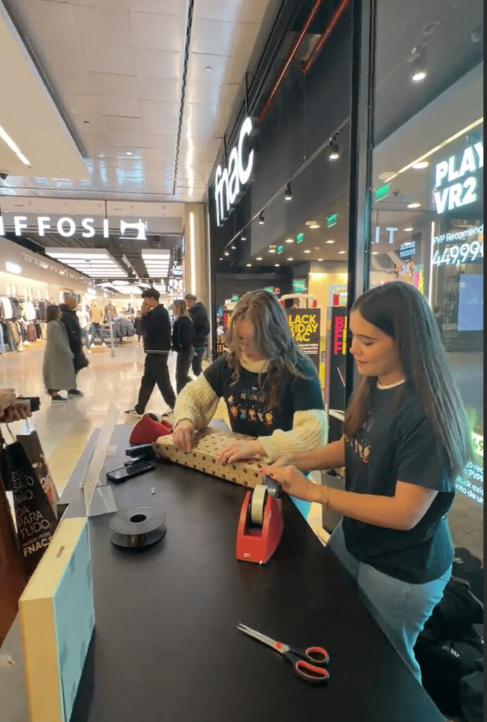 Durante cerca de 8 horas de voluntariado, os nossos membros dedicaram-se ao embrulho de prendas, sabendo que todo o valor angariado reverteria integralmente para apoiar esta missão. Entre papéis coloridos, laços e espírito de equipa, cada prenda embrulhada ganhou um significado especial. Mais do que um simples gesto, cada uma simbolizou carinho, dedicação e compromisso.